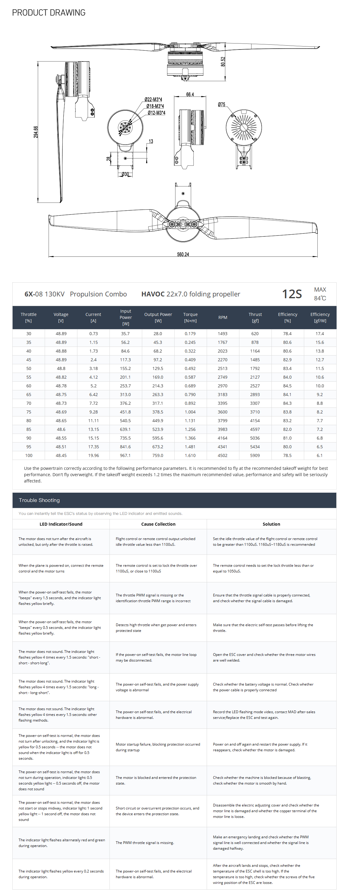 6X08-II 130KV Coaxial drone arm set brushless motor